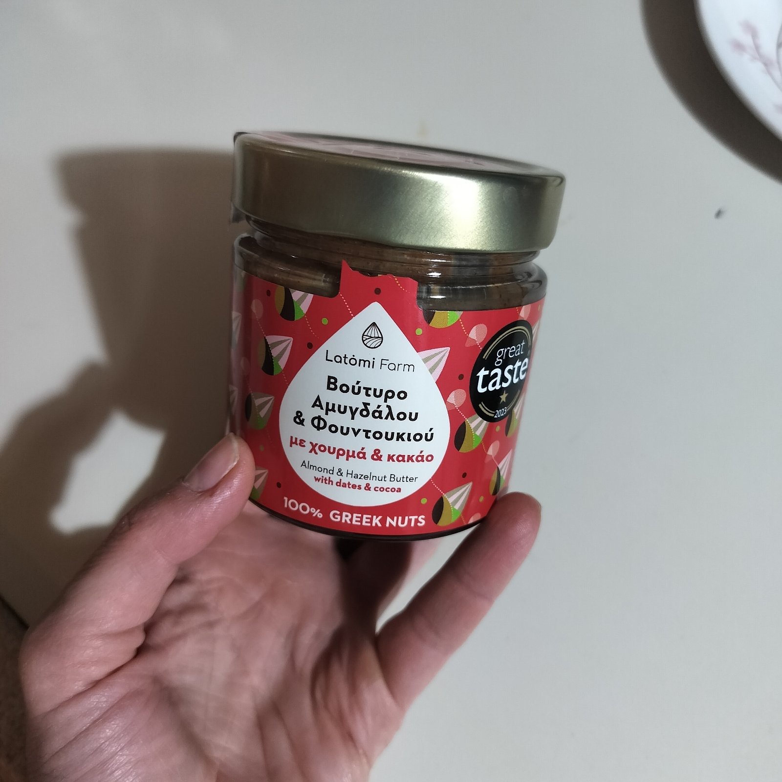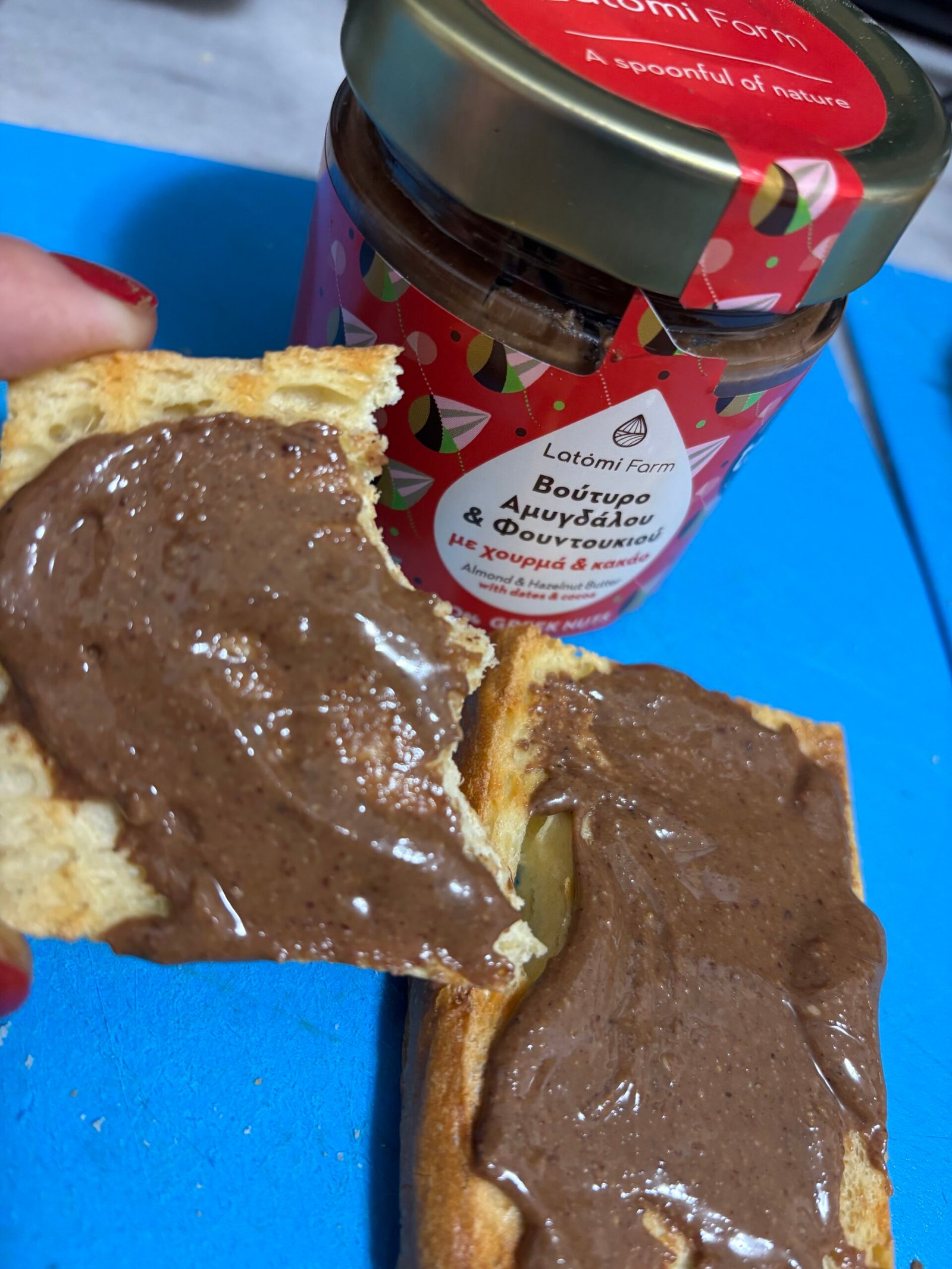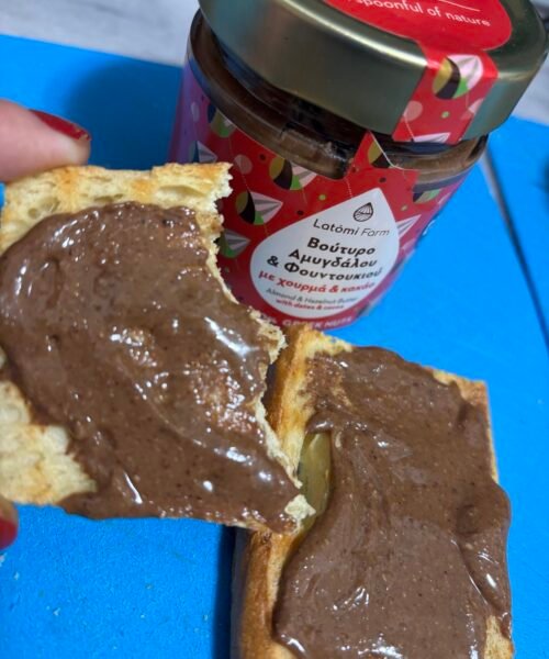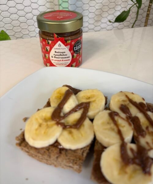 Το Βούτυρο Αμυγδάλου Φουντουκιού Χουρμά Κακάο, 210gr. Latomi farm αποτελεί μια μοναδική επιλογή για όσους αναζητούν υγιεινή διατροφή χωρίς εκπτώσεις στη γεύση. Περιέχει μόνο φυσικά συστατικά: αμύγδαλα, φουντούκια, χουρμάδες και κακάο. Χωρίς προσθήκη ζάχαρης ή συντηρητικών, με άλλα λόγια, είναι ιδανικό για ένα ισορροπημένο πρωινό ή ένα θρεπτικό σνακ.