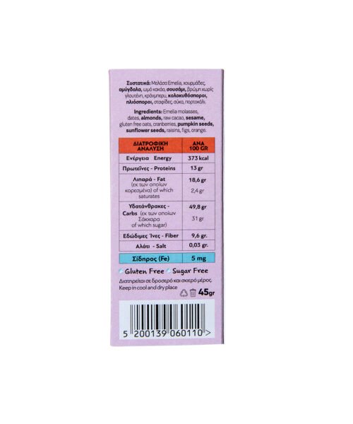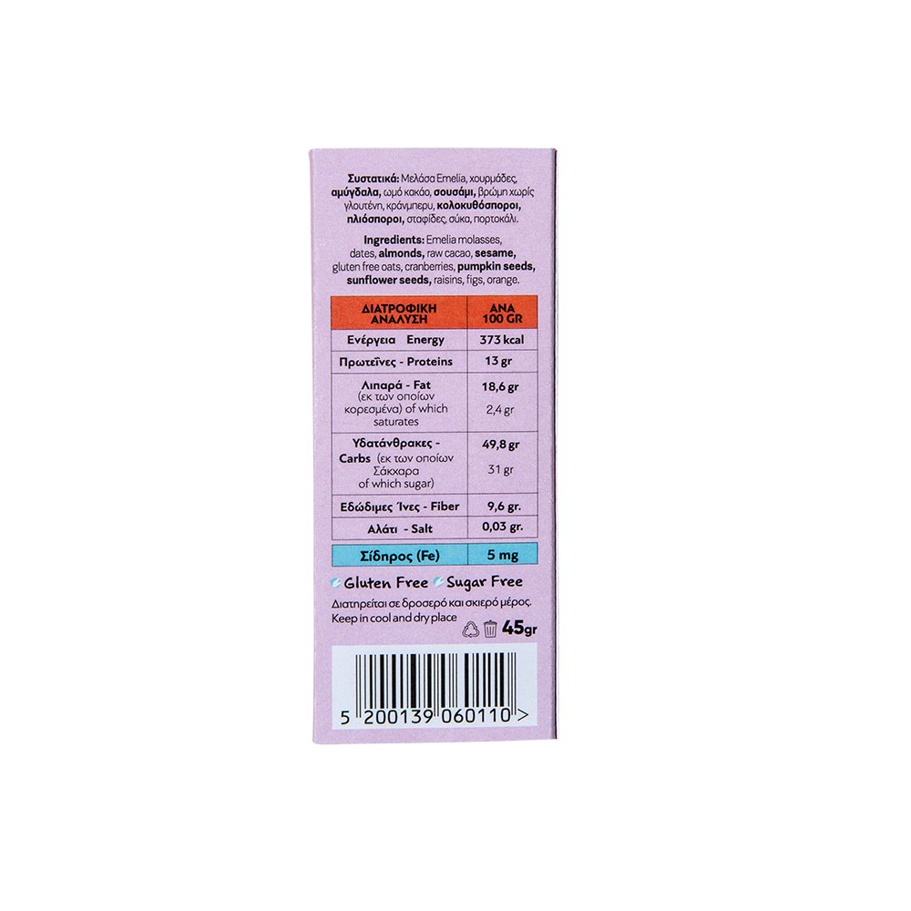 Ωμή Ενεργειακή Μπάρα Emelia Fine Foods – Πλούσια σε Σίδηρο, Χωρίς Ζάχαρη & Χωρίς Γλουτένη!