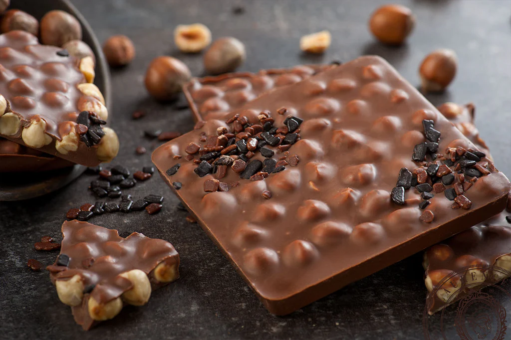 Παρασκευάζουμε το προϊόν με εκλεκτές πρώτες ύλες, εξασφαλίζοντας εξαιρετική ποιότητα. Δεύτερον, η υφή της σοκολάτας είναι βελούδινη, ενώ τα φουντούκια προσθέτουν μια φυσική τραγανότητα που απογειώνει τη γευστική εμπειρία. Επιπλέον, η συγκεκριμένη σοκολάτα αποτελεί ιδανική επιλογή τόσο για καθημερινή απόλαυση όσο και για δώρο.
