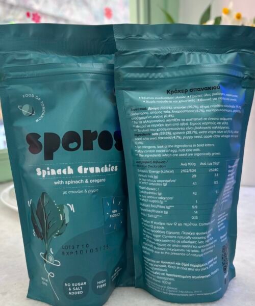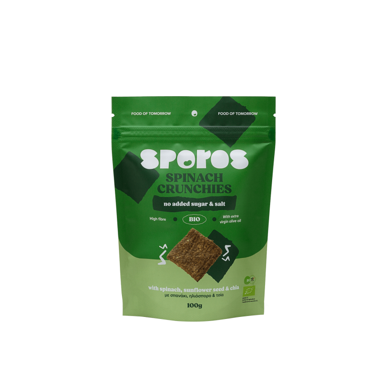 Πρώτον, τα Spinach Crunchies Sporos είναι κατάλληλα για όλες τις ηλικίες. Δηλαδή, είτε ψάχνετε ένα ελαφρύ σνακ για το γραφείο, είτε ένα υγιεινό τσιμπολόγημα για τα παιδιά, καλύπτουν κάθε ανάγκη. Δεύτερον, είναι vegan, χωρίς γλουτένη και φτιαγμένα από ελληνικές πρώτες ύλες. Πρόκειται για ένα σνακ φτιαγμένο από 100% φυσικά υλικά, χωρίς πρόσθετα ή συντηρητικά.